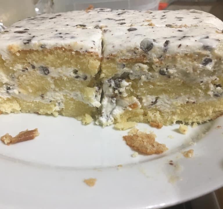 Continuate alternando strati di crema di ricotta e Pan di Spagna bagnato fino a completare lo stampo, terminando con uno strato di Pan di Spagna.