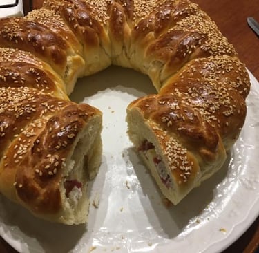 La corona di pan brioche salata è una delizia soffice e irresistibile, perfetta per arricchire la tavola delle feste o per un aperitivo speciale. Farcita con un ripieno saporito di prosciutto cotto e provola, questa corona si presenta con un doppio gusto: una parte ricoperta di semi di sesamo, l'altra farcita con salame, formaggi e ricotta. La sua semplicità nella preparazione e il contrasto di sapori la rendono un'opzione perfetta per chi cerca un piatto versatile e delizioso, capace di conquistare ogni palato.