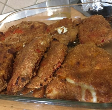 Le cotolette di peperoni ripiene sono una variante sfiziosa e leggera della ricetta originale che prevede la frittura. Con il loro ripieno filante di mozzarella, e l'aggiunta facoltativa di prosciutto cotto, diventano un piatto goloso e perfetto per ogni occasione. La cottura al forno rende questo piatto più leggero ma altrettanto saporito, con una croccantezza irresistibile e un ripieno che rimane morbido e saporito.
