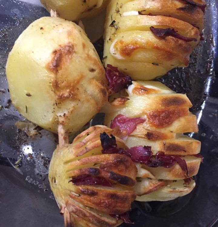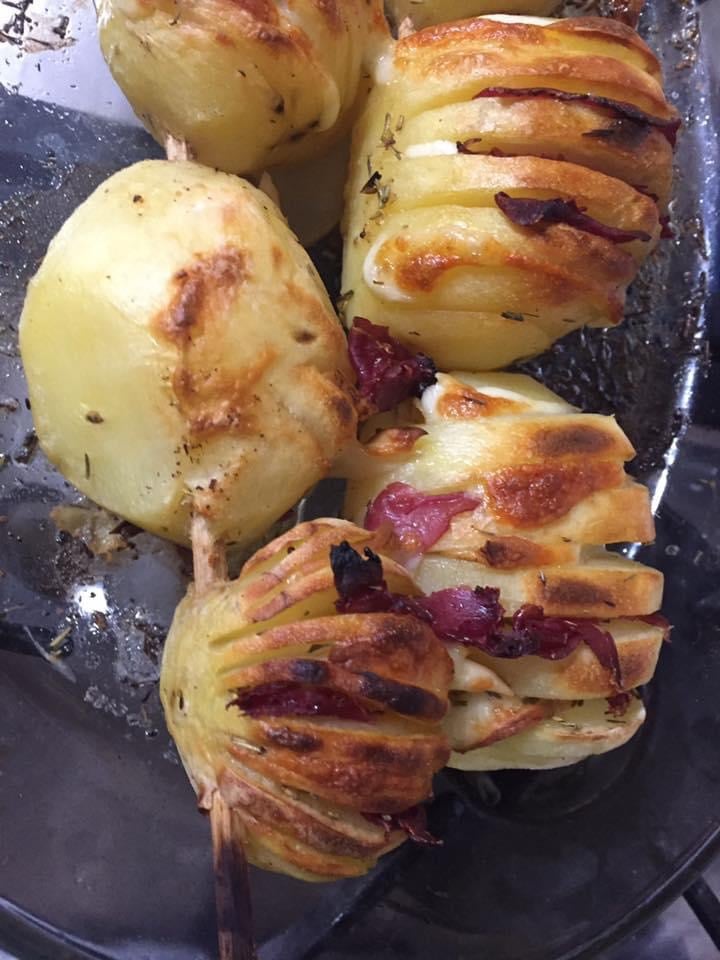 Patate a fisarmonica con pancetta e scamorza