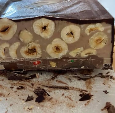 Aggiungere il ripieno corrispondente alla variante scelta (Nutella, crema Nutkao, nocciole, riso soffiato o Kinder Cereali) e coprire con un secondo strato di cioccolato.