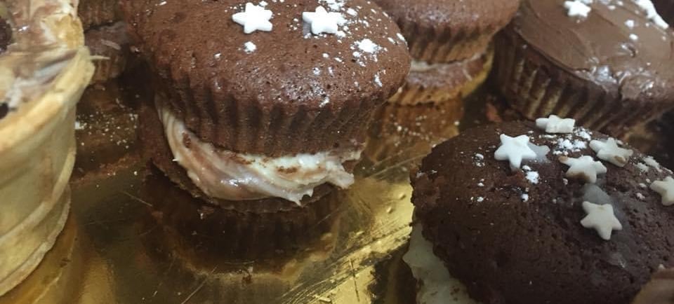 Una volta raffreddate, tagliare le tortine a metà e farcire con un generoso strato di crema Nutkao e Nutella.
