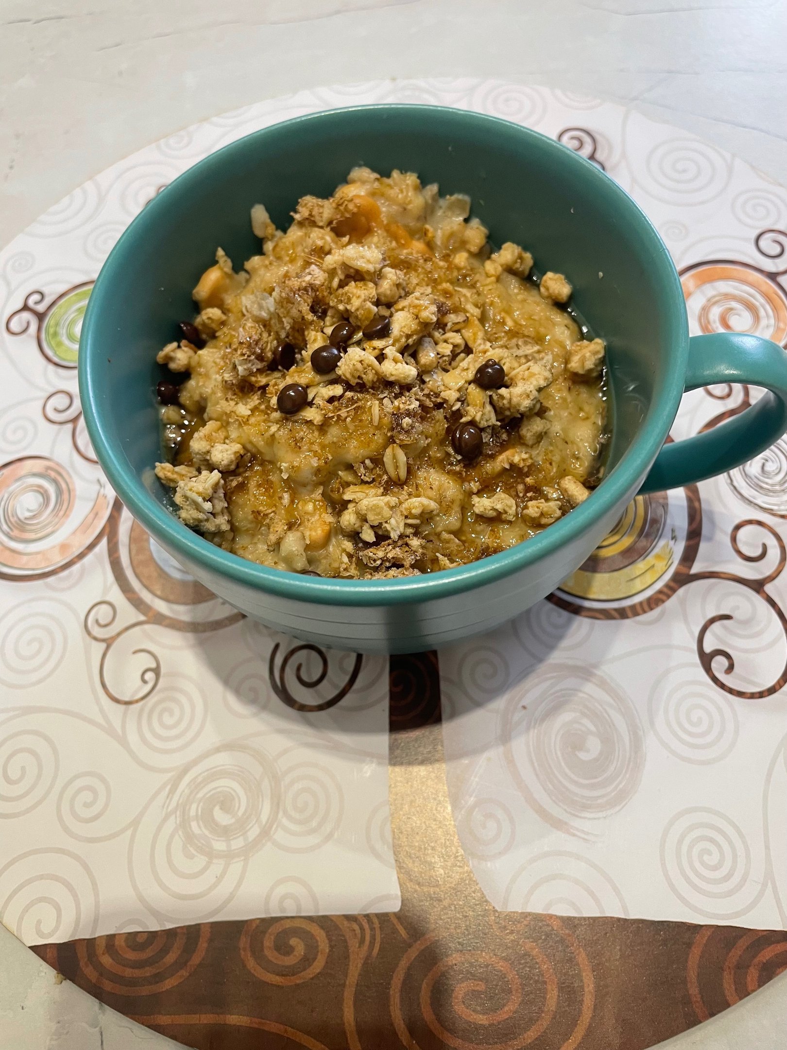 Questa volta ho aggiunto muesli, weetabix, gocce di cioccolato e un po’ di sciroppo d’acero.